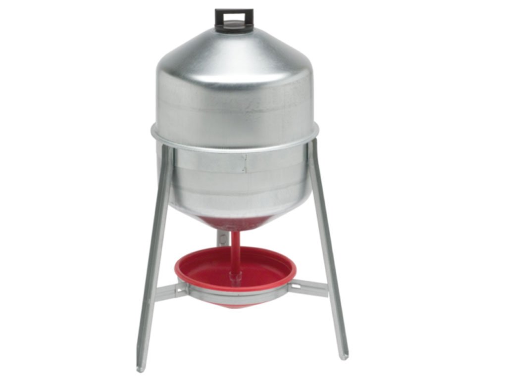 Barelová napáječka pro drůbež s miskou a 30L zásobníkem do 90 slepic krmítko ØxV 450x720 mm miska V 170 mm