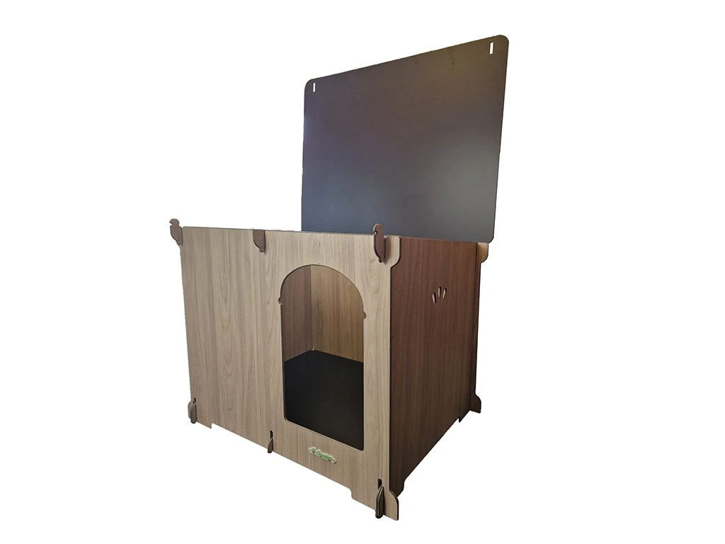- Bouda vyrobena z HPL laminátu vyžaduje pouze velmi malou údržbu a snadno čistí pomocí otevírací střechy a vyjímatelného dna. Psí boudu můžete jednoduše umýt vodou a čisticími prostředky pro domácnost. Pouze je nutné se vyvarovat kyselin nebo alkalických roztoků, které by mohly poškodit povrch.