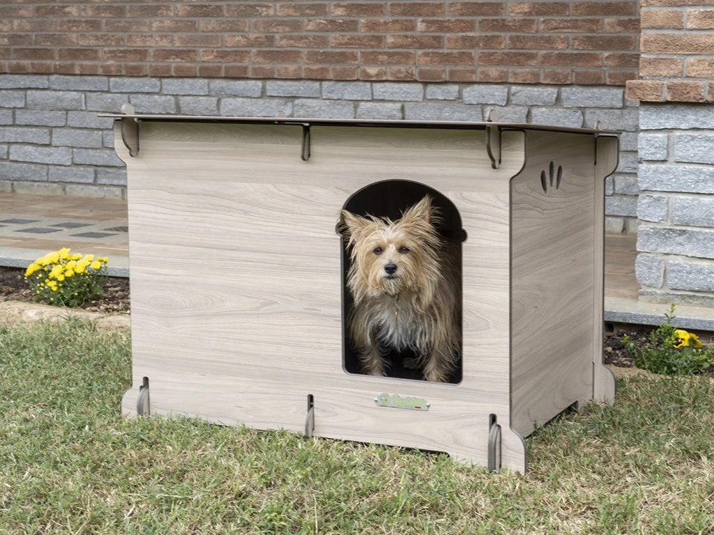 - Psí bouda vyrobena touto inovativní technikou je vodotěsná, odolná vůči zápachu a neuvolňuje žádné toxiny nebezpečné pro životní prostředí a pro zdraví psa.
