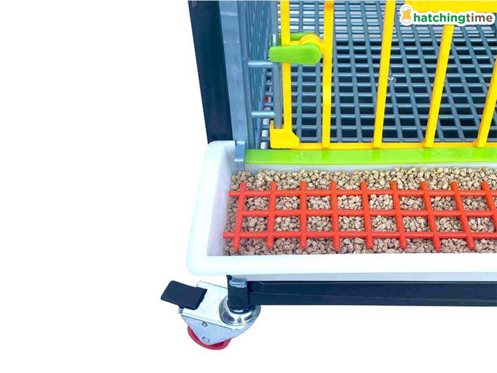 Klec pro odchov slepic, křepelek a další drůbeže o rozměrech 98 x 60 x 119 cm. Jedná se o 2 patrovou klec, která je vybavena krmítkem s mřížkou proti plýtvání krmiva a napáječkou s přívodem vody z 8 litrového zásobníku. Klece jsou vyrobeny z plastu s vysokou odolností proti trusu i bakteriím - velice snadná údržba klece i trusníku. Možnost rozšíření o další patra (max. 4 patra), snadná manipulace pomocí koleček s brzdou.