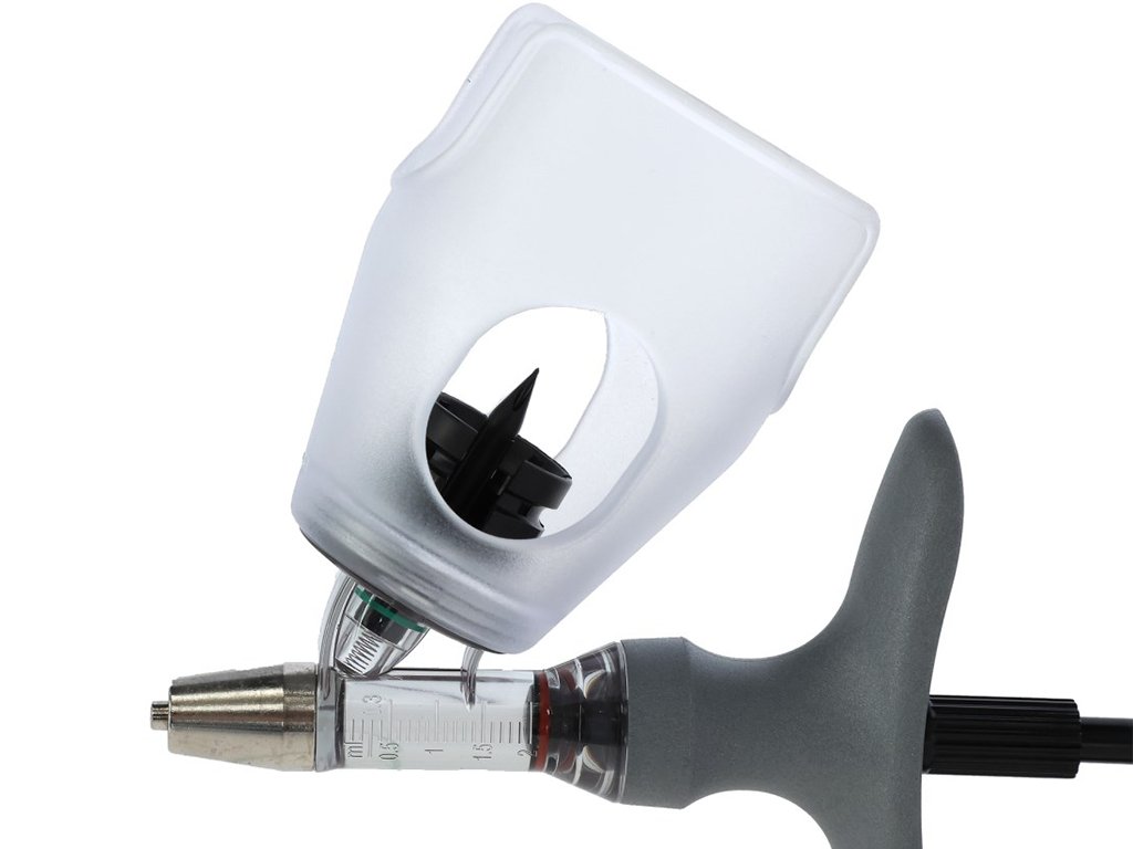 Očkovací injekční automat, s nástavcem na lahvičky, nastavitelné a přesné dávkování, kovový jehlový nástavec, robustní plastový kryt, skvělý poměr cena/výkon, dávkování 0,5 - 5 ml.
