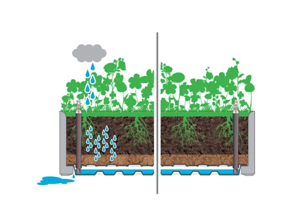 Unikátní zavlažovací systém s ukazatelem hladiny se postará o ideální zálivku, s tímto truhlíkem se již nemusíte bát, že by rostliny měly málo anebo hodně vody. Díky tomuto systému truhlík rostlinám poskytuje ideální podmínky pro jejich správný růst a plodnost.
