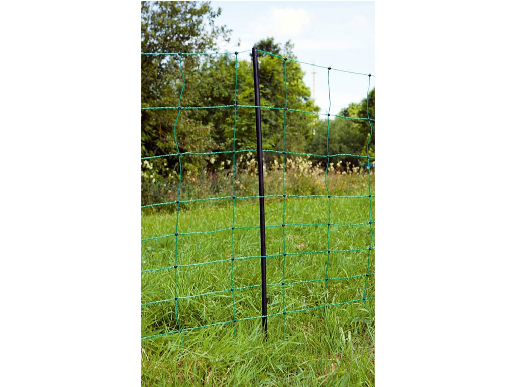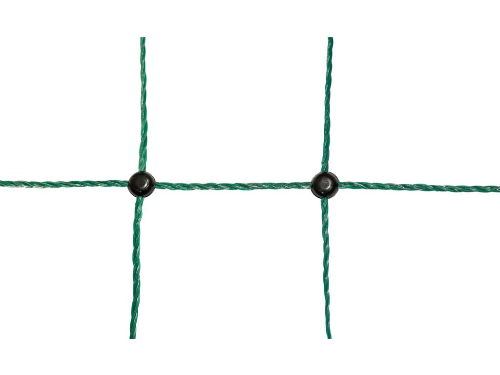 Ohradníková vodivá síť pro ovce, pro konstrukci elektrického ohradníku, 9 vodorovných pramenů, zesílený horní pramen až s 6 vodiči, spodní pramen bez vodiče, ostatní vodorovné prameny se 3 vodiči, 14 plastových tyček s dvojitým hrotem, pevně svařené spoje a odolné zarážky, výška 90 cm a délka 50 m.