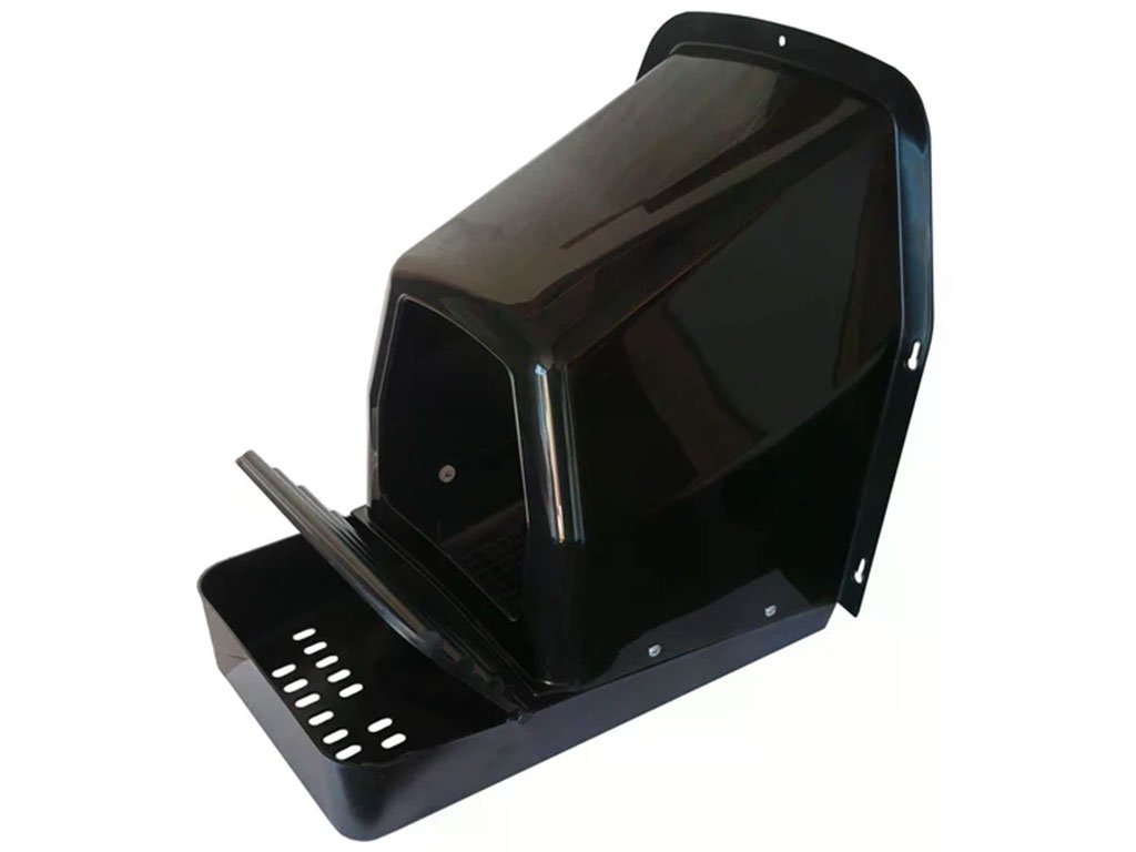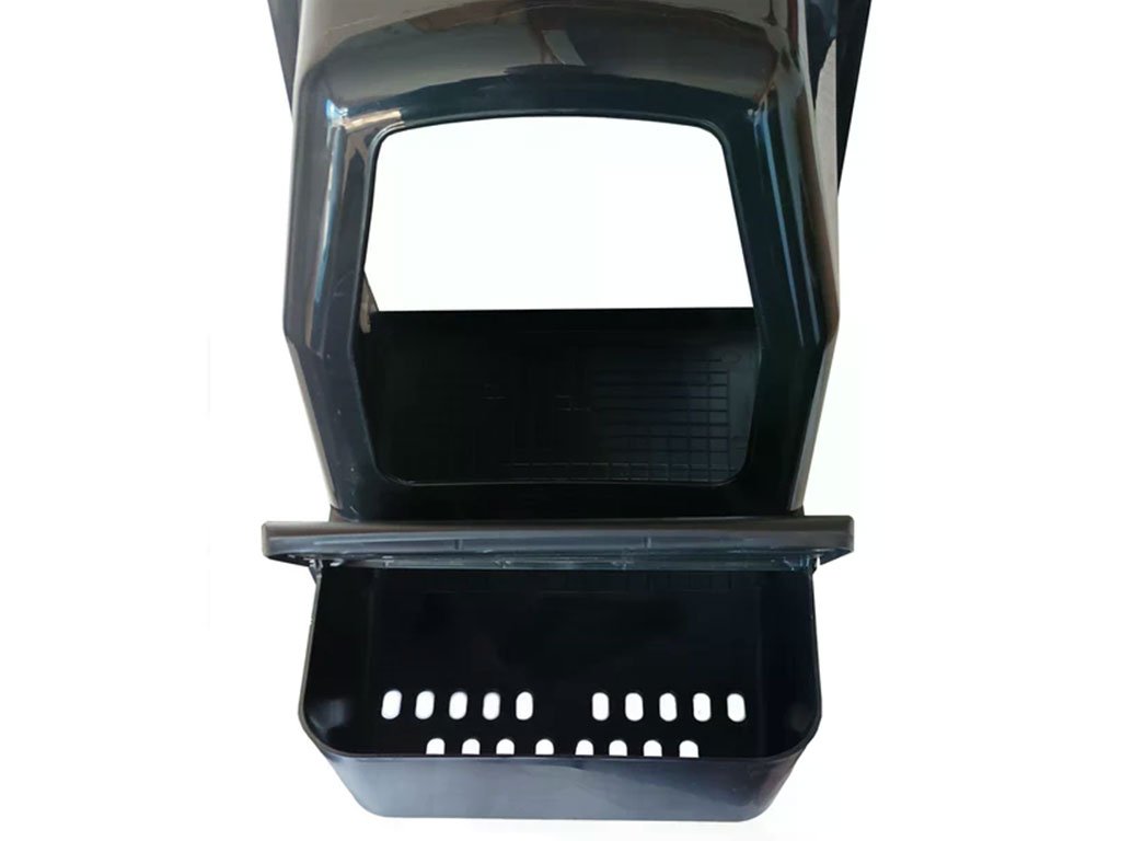 Snáškové hnízdo pro slepice se sběrným košíkem na vejce, kapacita až pro 5 nosnic na jednu kukaň, dno hnízda je spádované, vejce se samo odkutálí do košíku s kapacitou až na 10 vajec, vyrobené z plastu, barva černá. Jednoduché připevnění na zeď, velice snadná údržba čistoty, rozměry 44cm délka (28cm bez košíku) x 37cm šířka x 50cm výška.