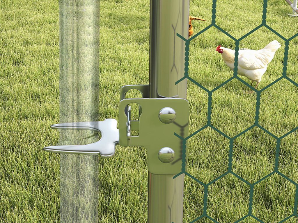 Tento prostorný výběh je skvělým řešením pro každého chovatele, který chce svým zvířatům dopřát bezpečný pobyt na čerstvém vzduchu. Díky odolnému pletivu a pevné ocelové konstrukci jsou zvířata chráněna před predátory i nepřízní počasí. Výběh snadno sestavíte díky promyšlenému systému a součástí je i stříška z voděodolné Oxfordské tkaniny, která chrání drůbež před sluncem i deštěm. Praktická velká branka a krmná dvířka zajišťují pohodlný přístup i snadnou péči o zvířata. Uvnitř výběhu je víceúrovňové bidýlko, které poskytuje místo k odpočinku i zábavě. Různé výšky bidýlek podporují pohyb a přirozené chování.