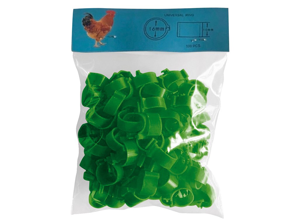 › Potřeby pro drůbež › Odchovny drůbeže › Odchovny drůbeže › Zámkový kroužek na slepice a kachny GAUN 14253 16mm, 100 ks - zelená