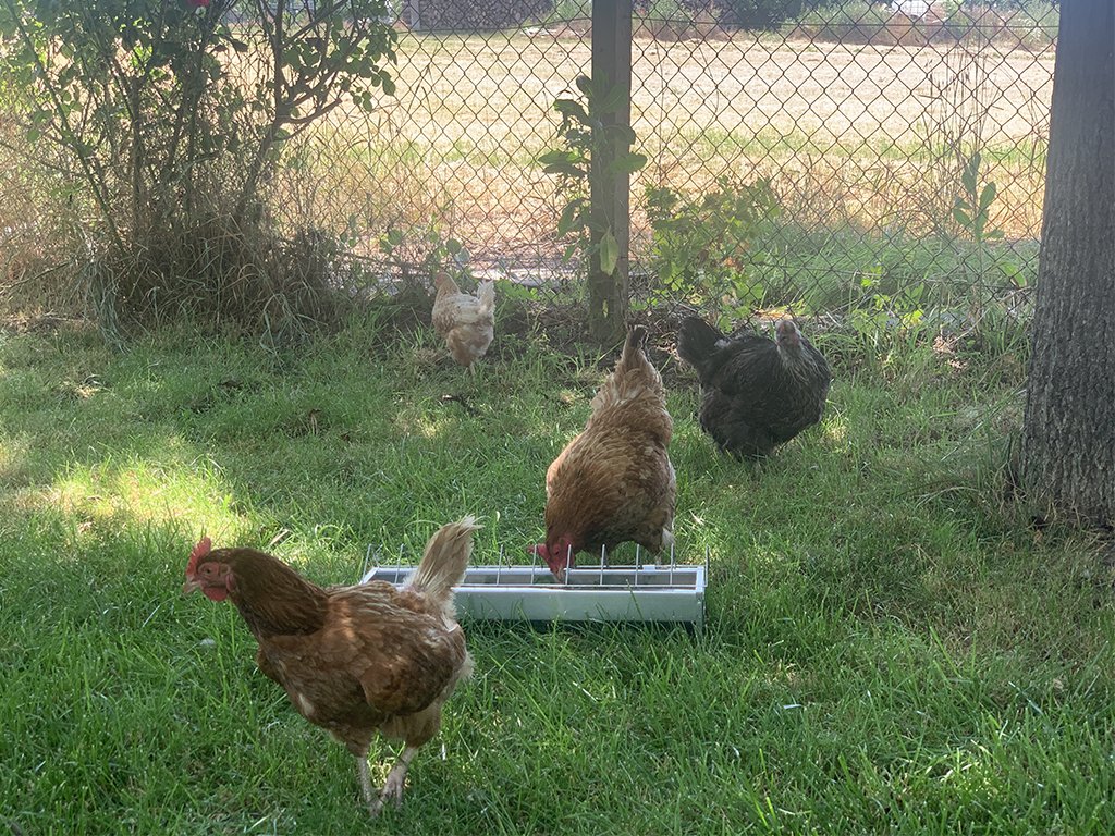 Žlabové krmítko pro slepice a další drůbež s rozměry 13x50 cm, 10 širokých otvorů, stabilní konstrukce, odolný a snadno omyvatelný pozinkovaný povrch.